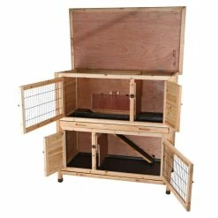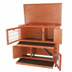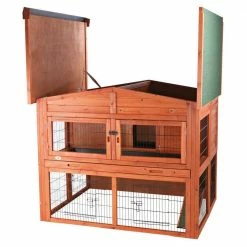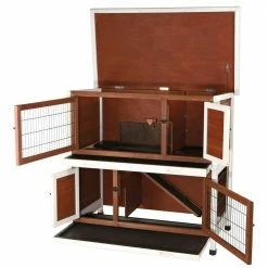 48 in. 2-Floors Wooden Rabbit Hutch Rabbit Hutch Chicken Coop House Wooden White Gray by Foobrues