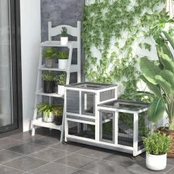 Grey Wooden Elevated Cage with Enclosed Run with Wheels, Ramp, Removable Tray Ideal by PawHut