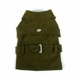 Medium Static Olive Green Galore Back-Buckled Fashion Wool Dog Coat by PET LIFE