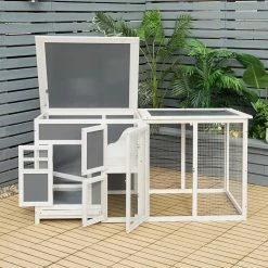 Wooden Elevated Rabbit Hutch Bunny Cage Small Animal House in Gray with Removable Tray by WELLFOR