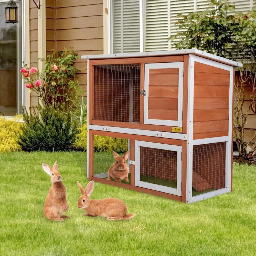 Rabbits are friendly pets but they do have unique care needs with a right hutch. This COZIWOW Indoor Outdoor 2-Tier Rabbit Hutch is an optimal option for your bunnies or other small animals. Boasting an upper duplex retreat and a lower mesh enclosed run, the wood cage allows your little furry friends to climb to the upper for resting/sleeping or stay in the lower for playing/exercising/roaming. Standing out of the bunny house, owners can begin a harmonious owner-pet interaction.