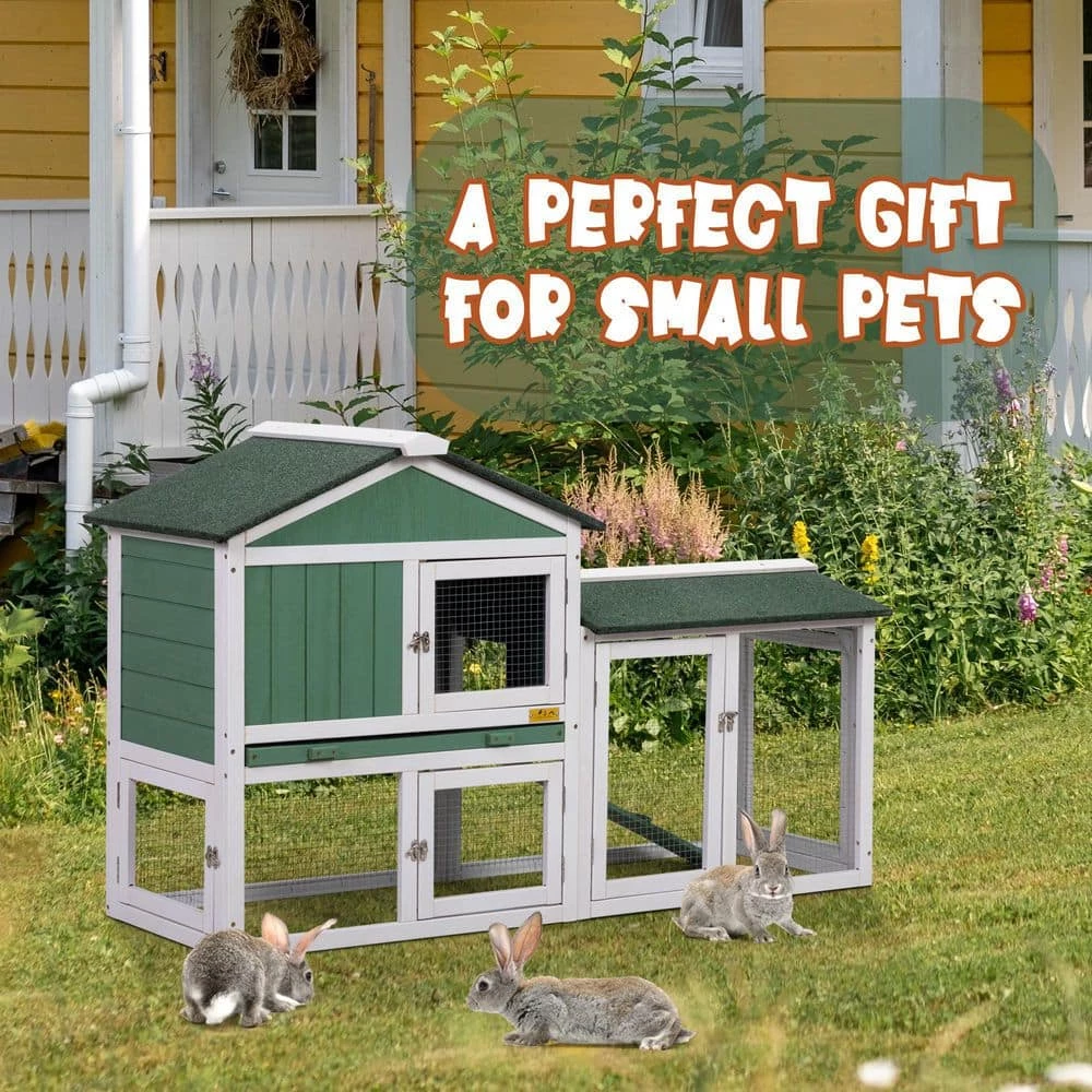- Durable and safe construction: this deluxe pet hutch is crafted from fully treated solid fir wood with a pet-friendly treatment, which ensures strength and safety, with waterproof painting and 2 gable asphalt roofs, the modern bunny house is durable for outdoors with little maintenance