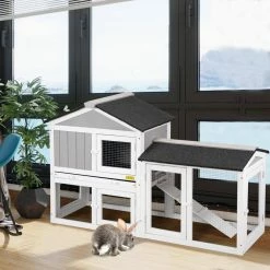 - Modern outdoor 2-story rabbit hutch for small animals in backyards and gardens