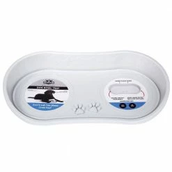 Avoid a mess of food and water with the Non Skid Pet Bowl Tray by Petmaker! The tray has raised sides to help prevent splashes; keeping liquid and food on the tray and water off the floor. A non skid texture is added to the bottom to prevent the bowl from moving around on hard floors. Raised circular edges are built into the tray to secure two 8-1/2″ food/water bowls. A neutral color matches any decor. Dishwasher Safe. Don’t worry about mess on your floor with the Non Skid Pet Bowl Tray by Petmaker!