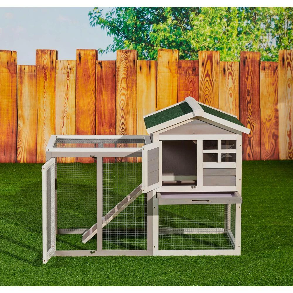 If you are looking to keep chickens, rabbits, guinea pigs, hamsters or other small animals in your backyard, try this large Rabbit Hutch. Pets coop comes with a nesting box, resting box and ramp. Your poultry can lay their eggs in the nesting box. There is sliding door and ramp allows poultry to easily enter the raised housing area. There are timber ridges above the ramp to protects your poultry from slipping back. With the design of the gridding door, you can watch your pets without disturbing.