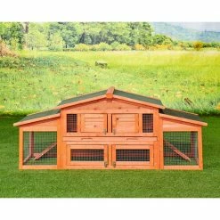If you are looking to keep rabbits, guinea pigs, chickens, or other small animals in your backyard, this outdoor large wood small animals house is the perfect habitat for any pet. This cage is set directly on the ground so your pets are able to feel the grass between their toes, or claws. The inner area is stacked above the run and both can be opened up from the front for easy access to your animals. The living area provides a safe and secure place for your pets to sleep in comfort. With the asphalt roof, you do not have to worry about your pets being in poor conditions because it will protect them from most weather conditions. Whether you want rabbits, chickens, or any other small animals, this hutch/coop is the perfect home.