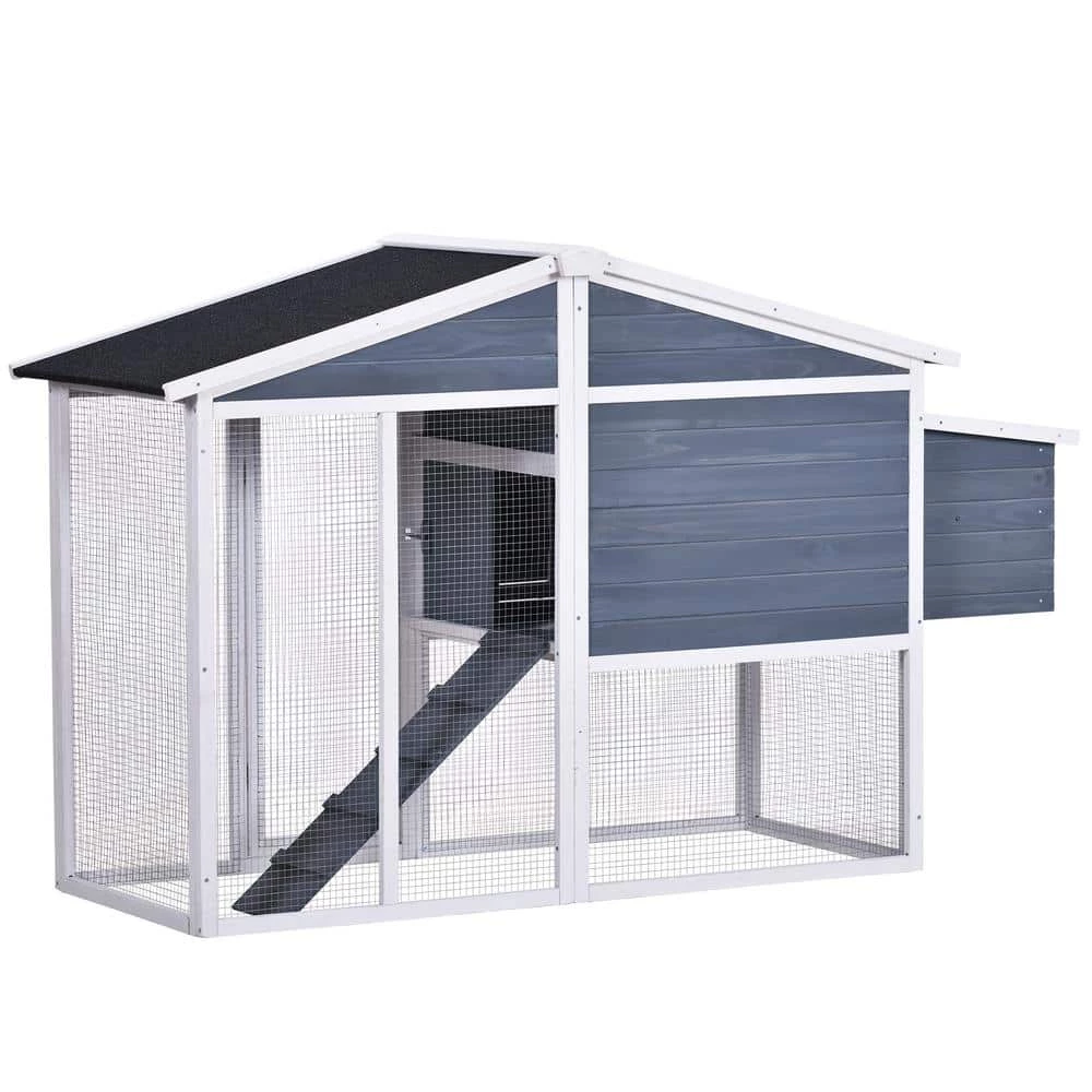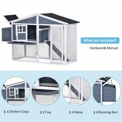 - Sturdy and Waterproof: Come with 1 chicken run, 1 nesting box, 1 tray, 1 ramp and 2 roosting bars, this wooden chicken coop is made of natural fir wood. To protect your little animals from rain, there are 3 green asphalt sloped roofs