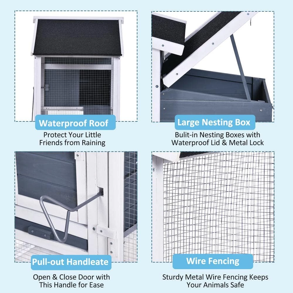 - Spacious Small Animal House: with 73.6 inches of lengthwise space, this coop is filled to the brim with both horizontal and vertical space, allowing your 3-4 chickens to stretch out their wings or rest and relax