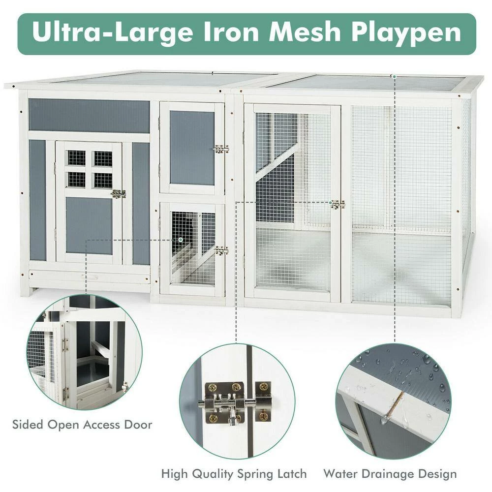 - Made of solid fir wood, this bunny hutch is not only extremely stable and durable for years to use, but also waterproof which is perfectly suitable for outdoor usages, such as gardens, backyards and patios, etc.