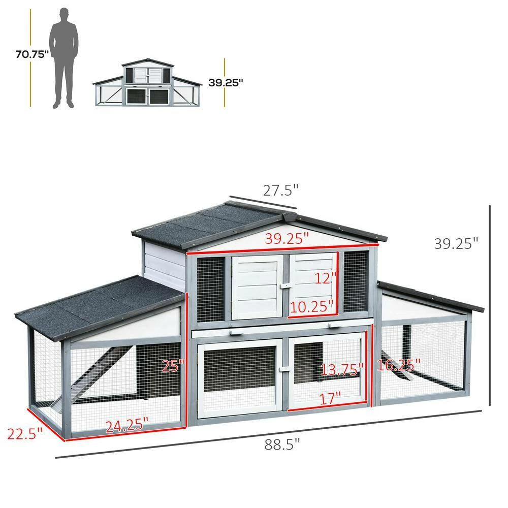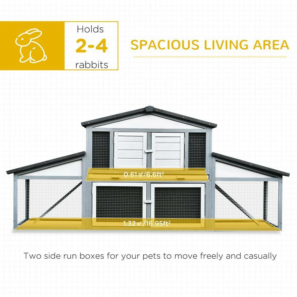 Let your rabbits have a break from being inside and allow them to enjoy the outdoor air with this large rabbit hutch from PawHut. The rabbit house has 2 tiers for your rabbit to enjoy. 1 level is fully enclosed, and the bottom tier is wrapped in a wire mesh, so they stay inside while enjoying the sun. Each level has 2 doors, so you can quickly put in and take out your pets. This PawHut bunny cage is a great addition to your backyard so they can enjoy the outdoors safely.