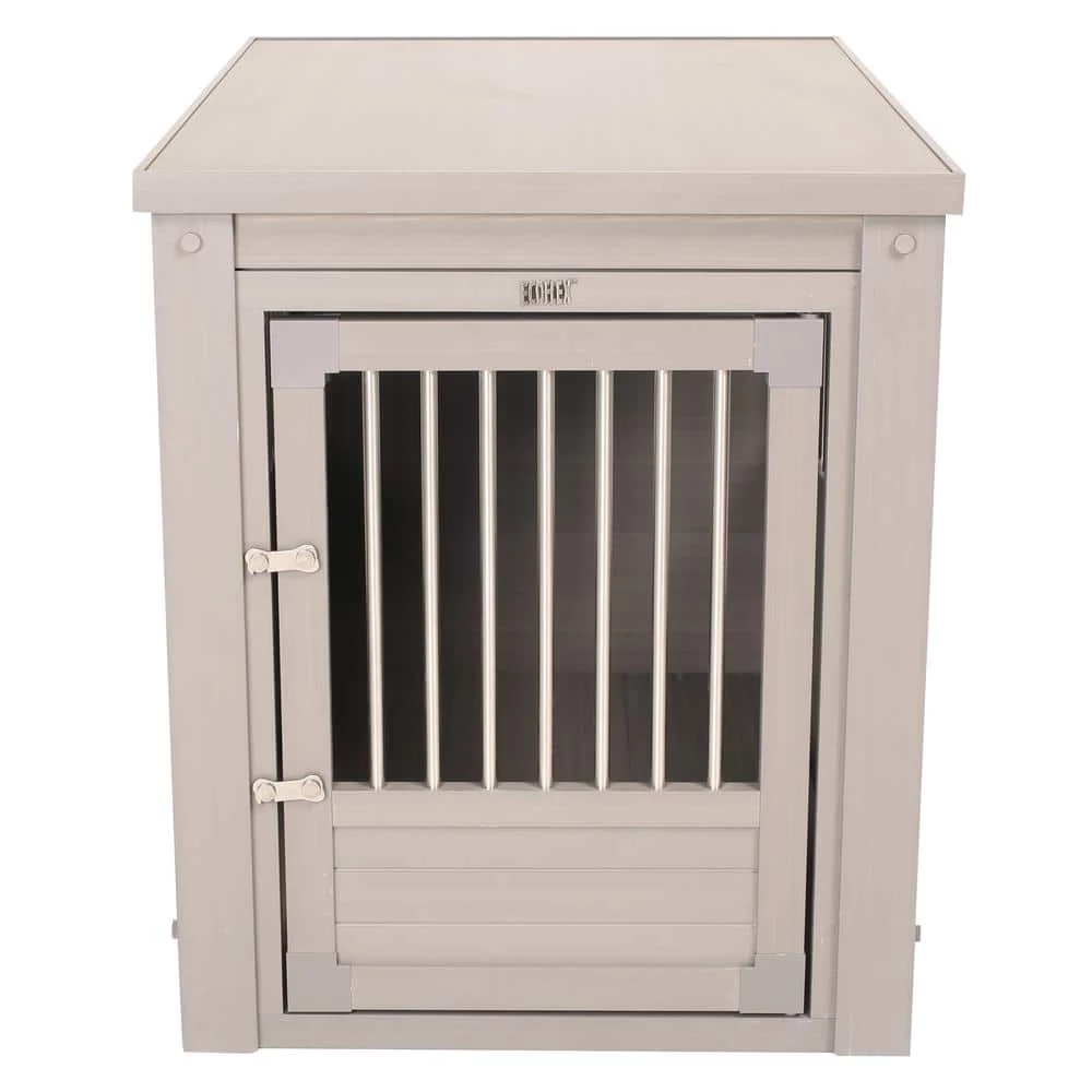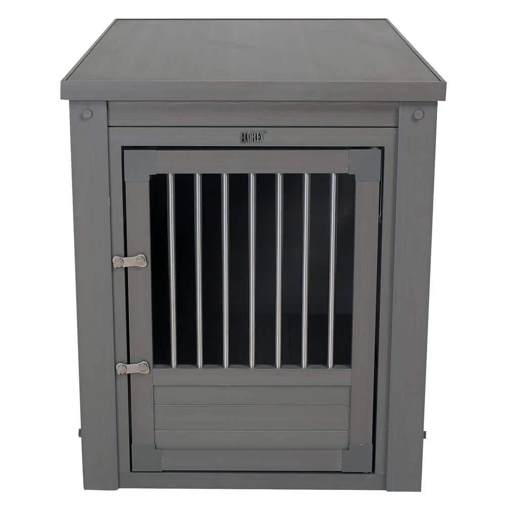 This ECOFLEX Dog Crate End Table is the perfect place for your pet when they are indoors. This ECOFLEX Crate End Table can easily do double duty in many houses where it can serve as an end table in the family room, bedroom or living room. Made of ECOFLEX material. ECOFLEX is a proprietary formula that incorporates reclaimed wood and plastic into the material that allows the product to be eco-friendly and a great value as it will outlast most other products. Designed for this use and carries an unprecedented one (1) year manufacturer warranty. Can be painted to coordinate with your other furnishings and inspire your pet style. Removable table top for easy cleaning. Color will never fade. Front door latches securely and cannot be accidentally opened. Small and Medium crates have one secure latch. Large and Extra Large crates have two secure latches. Crates are made for dogs that are familiar with crates and are less likely to chew. Spindles made of stainless steel tubing. Please note that any crate that isn’t 100% wire or metal has the ability to be chewed. This ECOFLEX Dog Crate melds form and function into a crate that can double as a piece of your home decor. Available in four sizes. Small for dogs up to 20 lbs. Medium for dogs up to 50 lbs. Large for dogs up to 80 lbs. X-Large for dogs up to 100 lbs. This product may not be a good fit for dogs that suffer from anxiety.