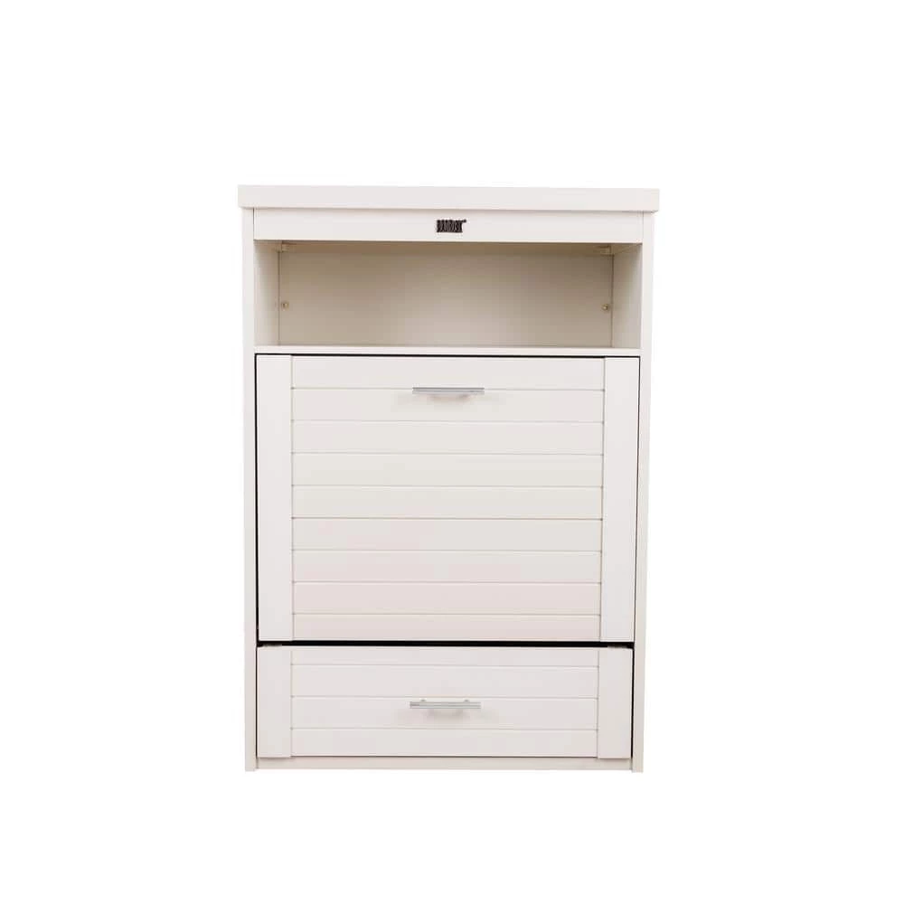 - Tilt down bin stores up to 25 lbs. of food in a heavy gauge, resealable plastic bag