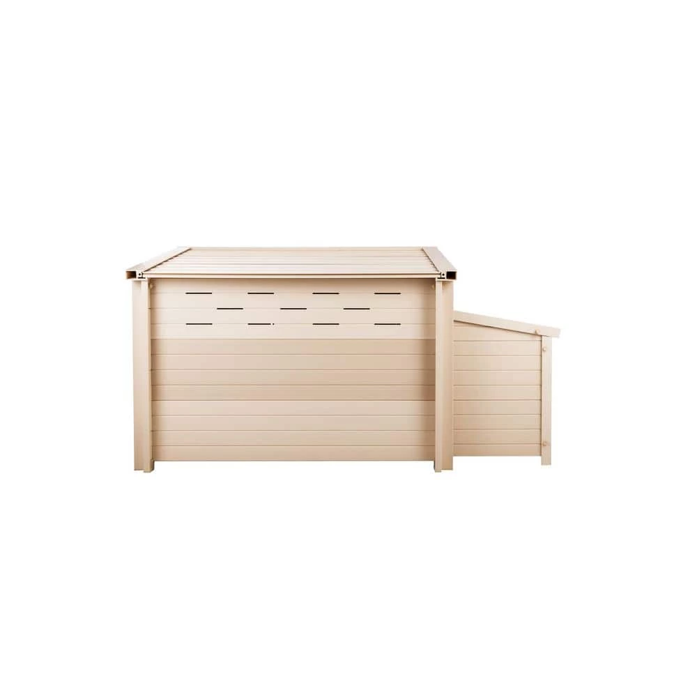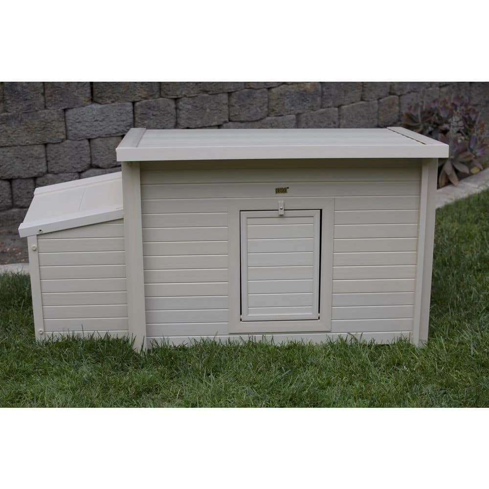 The New Age Pet ECOFLEX Fontana Urban Chicken Barn with Removable Roof is made with ECOFLEX, a proprietary composite blend of recycled polymers and reclaimed wood fiber by-products. The ECOFLEX material is non-toxic, eco-friendly and impervious to moisture and odor, making it the perfect material to keep your pet happy and healthy. All NewAgePet outdoor products are backed by an unrivaled 10-year limited manufacturer warranty. This coop features a side mounted nesting box with hinged lid for easy egg collecting, two roosting bars located in the main body of the coop and a door that acts as a ramp when opened. Available in Maple and Red with Maple trim. Can be used alone, or with our NewAgePet Fontana Pen. NewAgePet products are easy to assemble, easy to clean and easy to LOVE! Long lasting chicken barn to house up to 2-3 birds. Assembled dimensions: 29.4″L x 52.4″W x 29.1″H Inner dimensions: 34.1″L x 21.7″W x 24.8″H Door dimensions: 10″L x 14.75″W