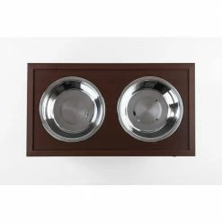 Diner + Storage = efficient use of space. A spot for food, water and extra space to store treats or excess food inside. Ergonomically designed for a correct feeding position, which is perfect for taller dogs. Includes two 32oz. stainless steel bowls and sealed storage bag that fits up to 25 lbs of dry food. ECOFLEX is a proprietary formula that incorporates reclaimed wood and plastic into the material that allows the product to be eco-friendly and a great value as it will outlast most other products. ECOFLEX is 100% non toxic and does not absorb moisture. There is nothing in ECOFLEX that could harm your pets. Easy to clean with a damp cloth. Easy no tools assembly. Exterior Dimensions: 21.3 in. x 11.8 in. x 15.55 in. Interior Dimensions: 18.8 in. x 10.4 in. x 10.8 in