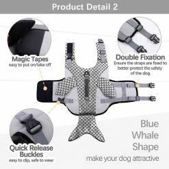 - Adjustable fit and easy to wear: adjust belt with the quick-release buckles, you can adjust the belt to fit your pet perfectly, except the buckles, we also designed the magic tapes on the neck and abdomen which make sure the safety of pets and also you can easily help the dog to wear and take off