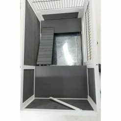TRIXIE’s Indoor Rabbit Hutch is ideal for single and smaller breed rabbits, as well as guinea pigs. The 2-Story design has a retreat area on the upper level, accessible by a non-slip ramp. On the bottom level a small side door can be lowered as a ramp for free ranging rabbits. Features lockable wheels for convenient handling and moving. 3-doors allow easy access the hutch from different positions. The top door has a locking arm. For convenient cleanup, includes a deep pull-out metal tub. Solid wood construction, painted finish and the finest materials mean this hutch will endure years of use with very little maintenance. Quick and easy assembly. 40.25 in x 23.75 in x 26 in.