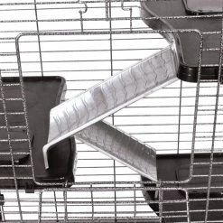 TRIXIE’s Indoor Rabbit Hutch is ideal for single and smaller breed rabbits, as well as guinea pigs. The 2-Story design has a retreat area on the upper level, accessible by a non-slip ramp. On the bottom level a small side door can be lowered as a ramp for free ranging rabbits. Features lockable wheels for convenient handling and moving. 3-doors allow easy access the hutch from different positions. The top door has a locking arm. For convenient cleanup, includes a deep pull-out metal tub. Solid wood construction, painted finish and the finest materials mean this hutch will endure years of use with very little maintenance. Quick and easy assembly. 40.25 in x 23.75 in x 26 in.