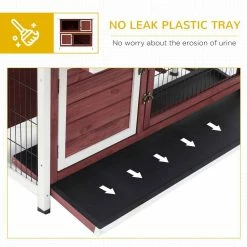 Give your furry friends an ideal mix of freedom and security with our 2-story bunny house from PawHut. Designed with your pet in mind, one side of the enclosed hutch is designed for privacy and rest while the other offers a more open style built for play. The non-slip ramp allows your pets to roam both upstairs and downstairs for ideal comfort. You can also choose to restrict access between levels with the interior hatch door. The raised rabbit starter kit is elevated off of the ground to protect your rabbits from wet or hot weather. Trays are included for easy clean up and the entire unit to protect from rainy and wet conditions. Create a comfortable space for your bunnies with this outdoor rabbit cage from PawHut!