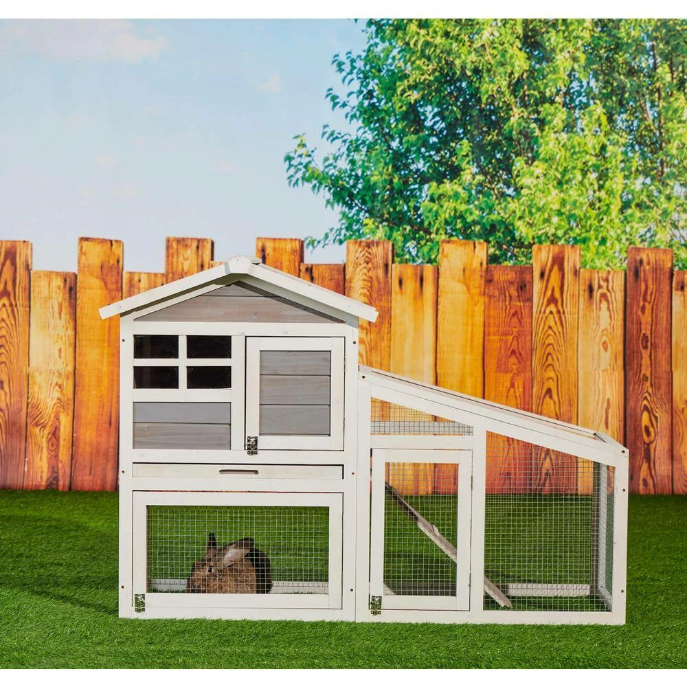 - Removable pull-out tray between 2 floors makes it easier to clean and maintain while also providing a neat and healthier environment for bunnies, grid fences ensure excellent ventilation which is essential to poultries’ living