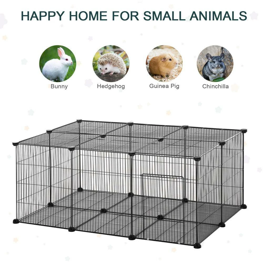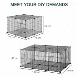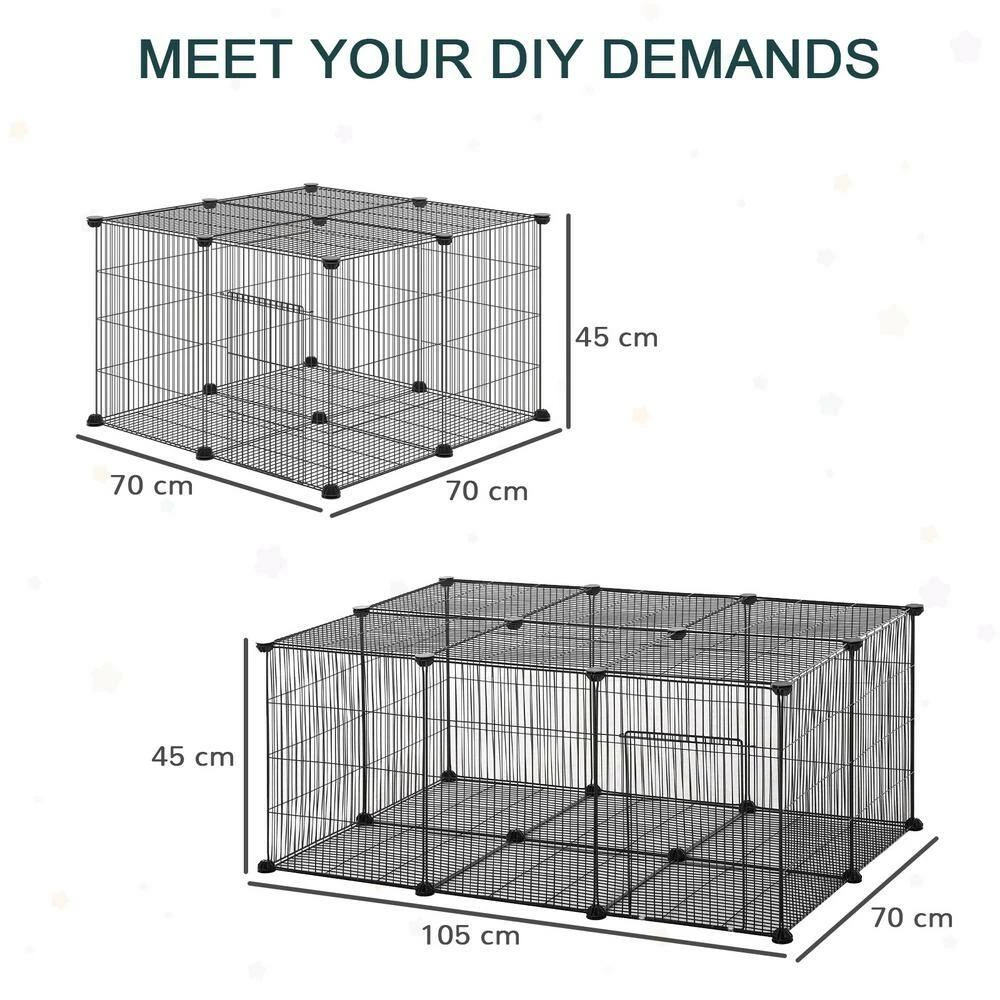 This bunny cage from PawHut gives your pet a space of their own to rest and play! The multi-angle connectors make the hedgehog cage easy to set up and take down. The DIY design lets you transform the enclosure from a playpen to a kennel. Suitable for bunnies, chinchillas, hedgehogs, guinea pigs and other similar sized pets. The non-slip mats and cable ties help to secure the guinea pig habitat and avoid a wobbly cage.