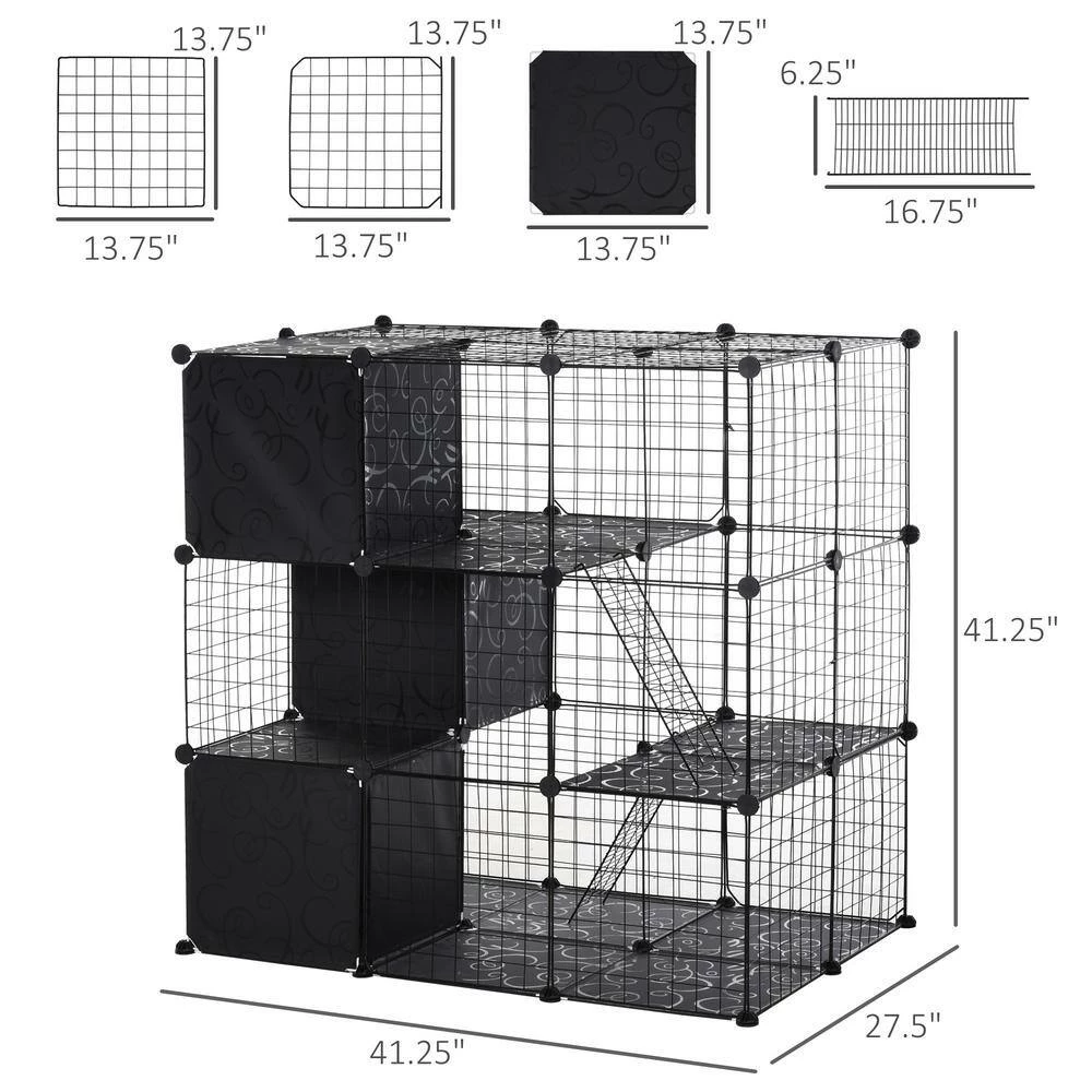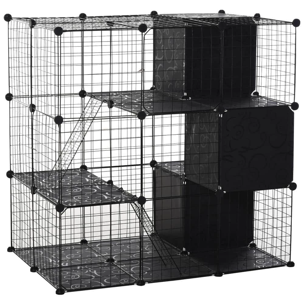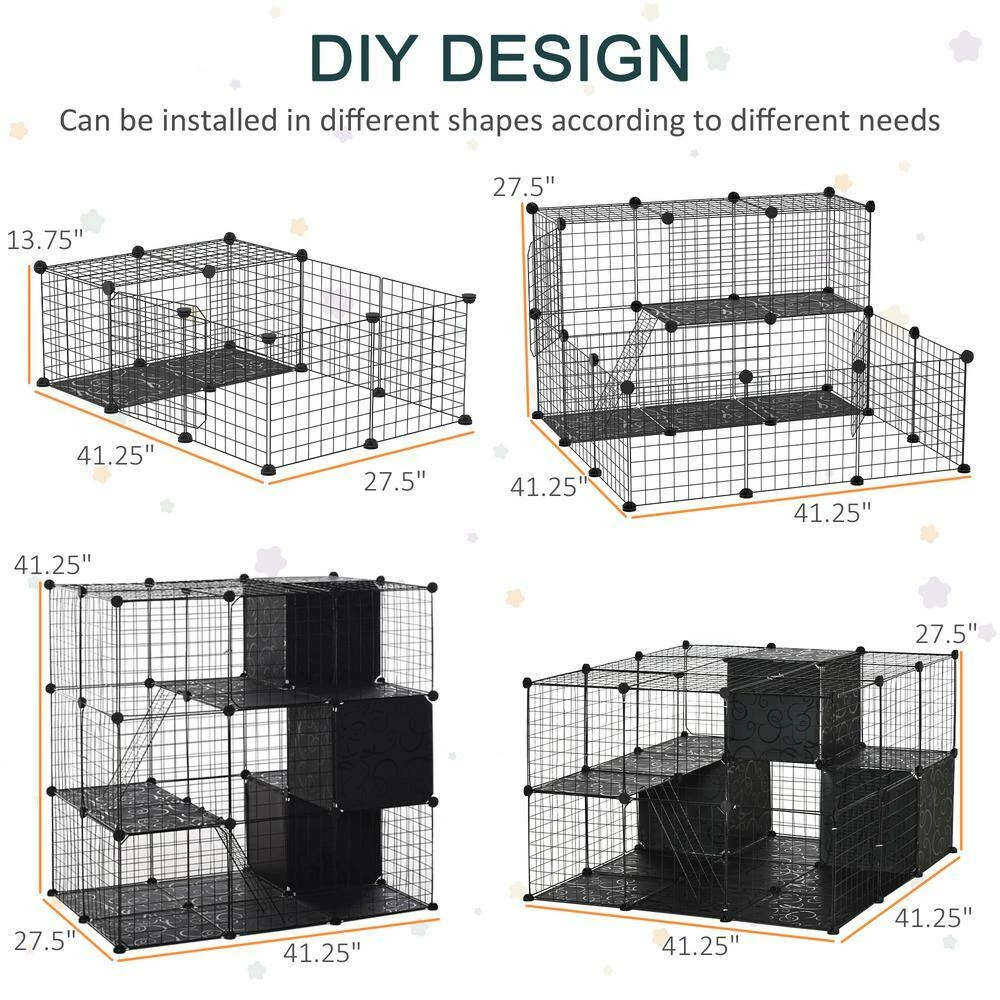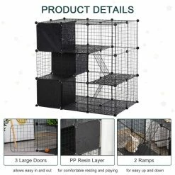 Give your pet a place of their own to rest and play with the PawHut cage for small animals! The pet cage provides ample living and playing space for your pets to run around. The DIY design lets you create a cage for small animals and a storage rack in one. The pet playpen is made with metal wire to allow fresh air to pass through and keep your pet comfortable. Make transporting your pet and replenishing their food and water a breeze with 3 large doors on the cage. Suitable for rabbits, chinchillas and pet minks.