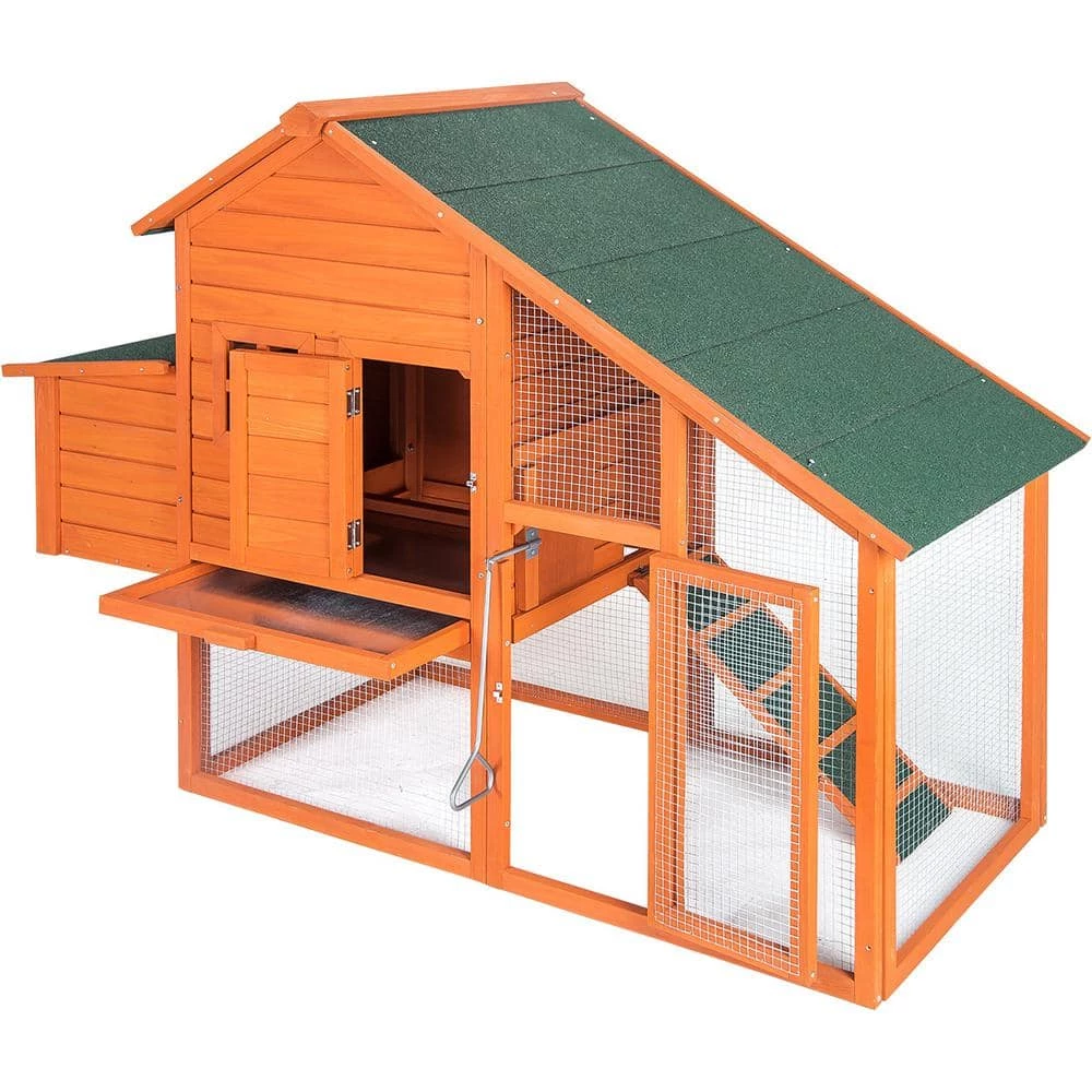 - Spacious activity areas and warm sheltered resting room is perfect for chickens