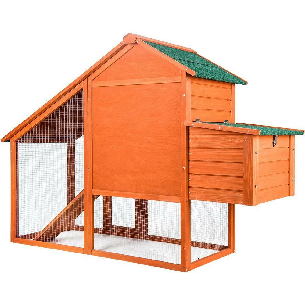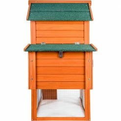 Green asphalt roof and waterproof paint coated on the wood for long time use. Spacious resting area and running area for your pet to have a good rest and good play. Pull-out tray for easy cleaning. designed with a nesting box to create a quiet environment for raw eggs. Designed with a steel slide pole for easy open and close the door Made in China. For 2-chicken to 3-chicken or 3-rabbits to 4-rabbits.