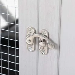 This rabbit cage equipped with 2 lockable doors, an openable roof, and a pull-out tray is easy to clean thoroughly to create a healthy living area. Opening the door and the top, you can play with your pets easily, your lovely friends can play on the first wire-mesh layer, and climb up the ramp to enjoy comfortable and private sleep. The upper mini patio enclosed by a wooden fence are designed for observation.
