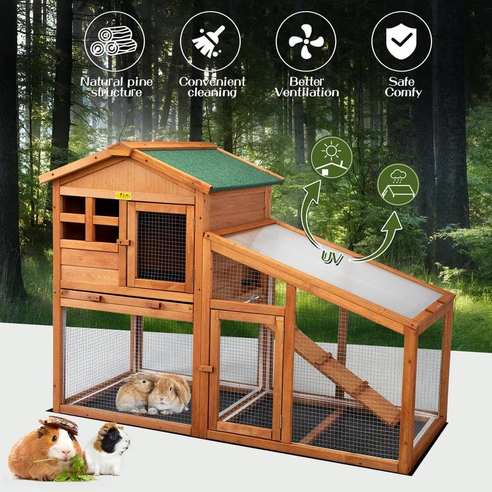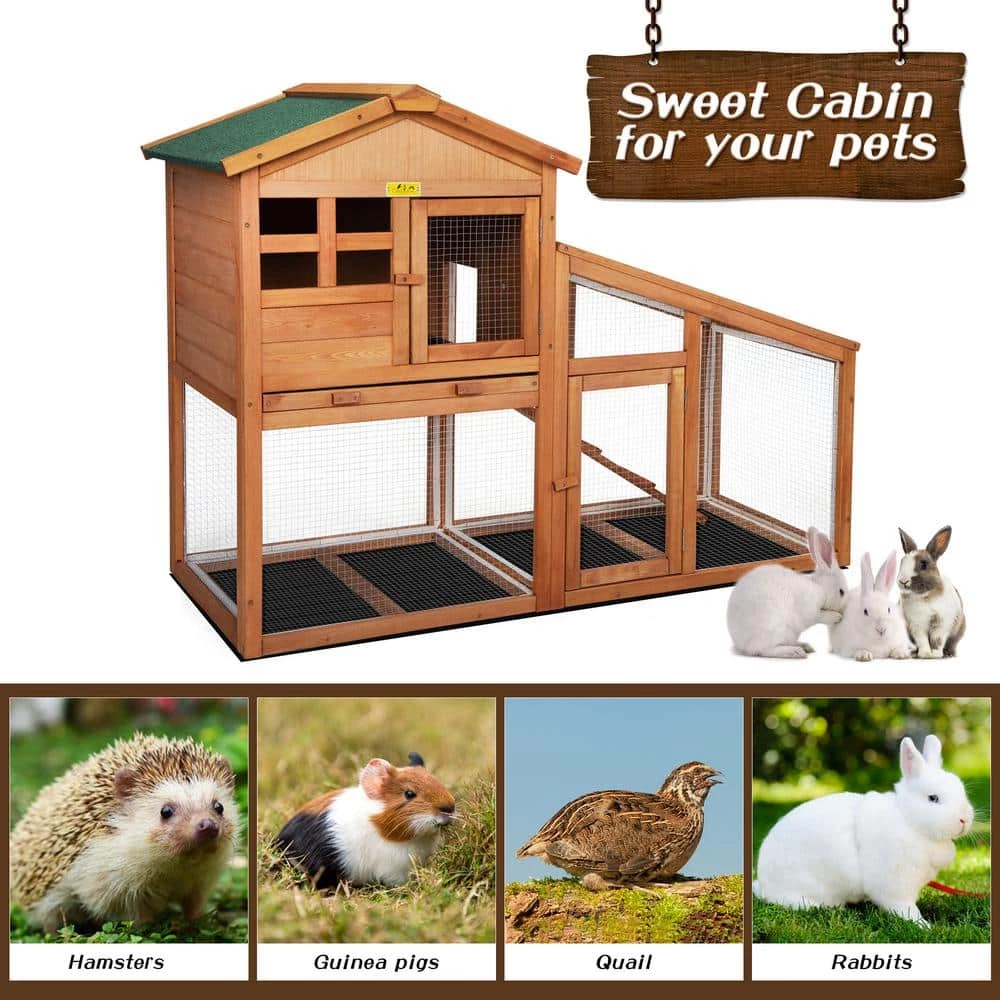 - Stylish house for small pets: this luxury yet affordable 2-story wood rabbit hutch with a private retreat and spacious activity areas is a safe and cozy shelter to keep your bunnies, chicks, or guinea pigs safe from the weather and predators