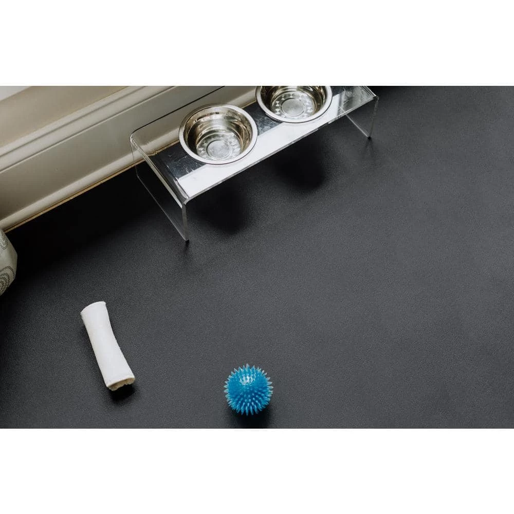 The G-Floor Pet Floor Protector is manufactured from specially formulated polyvinyl that protects your low pile carpet, hardwood, tile and other expensive floors from pet accidents, stains and scratches. Shielding your subfloor from messes, these pet floor protectors are completely waterproof to protect your flooring from urine, water, mud or any other undesired liquids your pet may bring. This 5 ft. x 10 ft. Slate Grey pet floor protector is made from 100% polyvinyl making it a breeze for you to trim to fit under litter boxes, dog crates or other pet shelters with just a utility knife. Lightweight and repositionable with no installation required, this will be the solution you have been looking for to keep your pet areas clean, and free from the headache of pet stains.