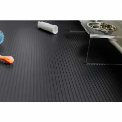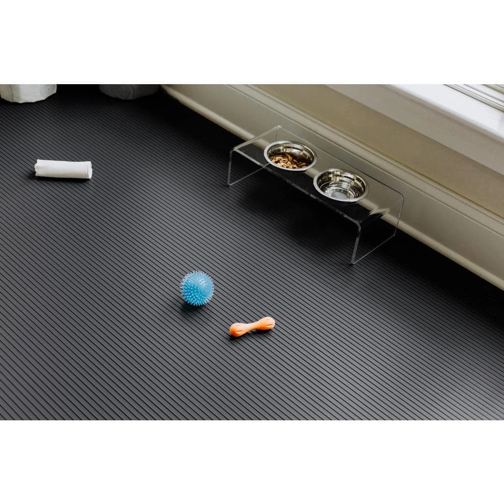 The G-Floor Pet Floor Protector is manufactured from specially formulated polyvinyl that protects your low pile carpet, hardwood, tile and other expensive floors from pet accidents, stains and scratches. Shielding your subfloor from messes, these pet floor protectors are completely waterproof to protect your flooring from urine, water, mud or any other undesired liquids your pet may bring. This 5 ft. x 10 ft. Slate Grey Ribbed pet floor protector is made from 100% polyvinyl making it a breeze for you to trim to fit under litter boxes, dog crates or other pet shelters with just a utility knife. Lightweight and repositionable with no installation required, this will be the solution you have been looking for to keep your pet areas clean, and free from the headache of pet stains.
