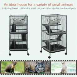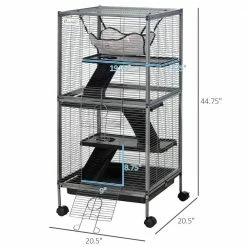 PawHut small animal Cage is the perfect home for small animals like pet mink, chinchilla, small cat and other similar sized small pets. It features 4 wheels for easy moving from room to room and also provides a bit more height for your pet’ view. The durable design features 2 large doors for easy access to your pet. A removable tray for easy cleaning up. Features ramp and platform to complete this cage.Keep them secure, keep them secure, but also keep them active and occupied for a long life worth living.