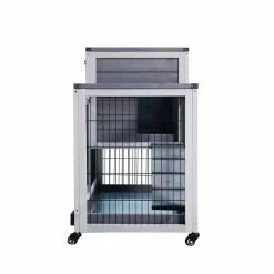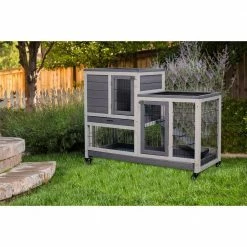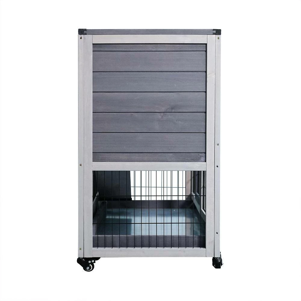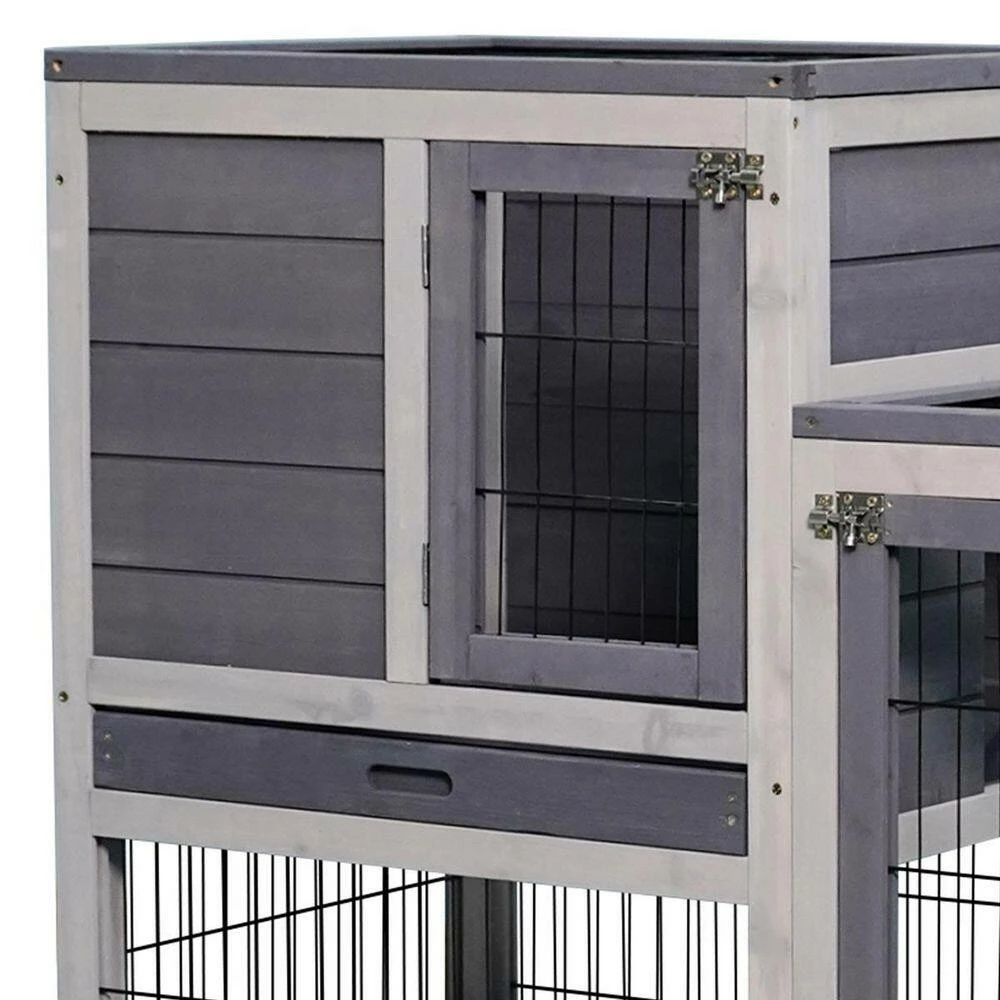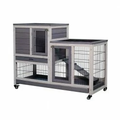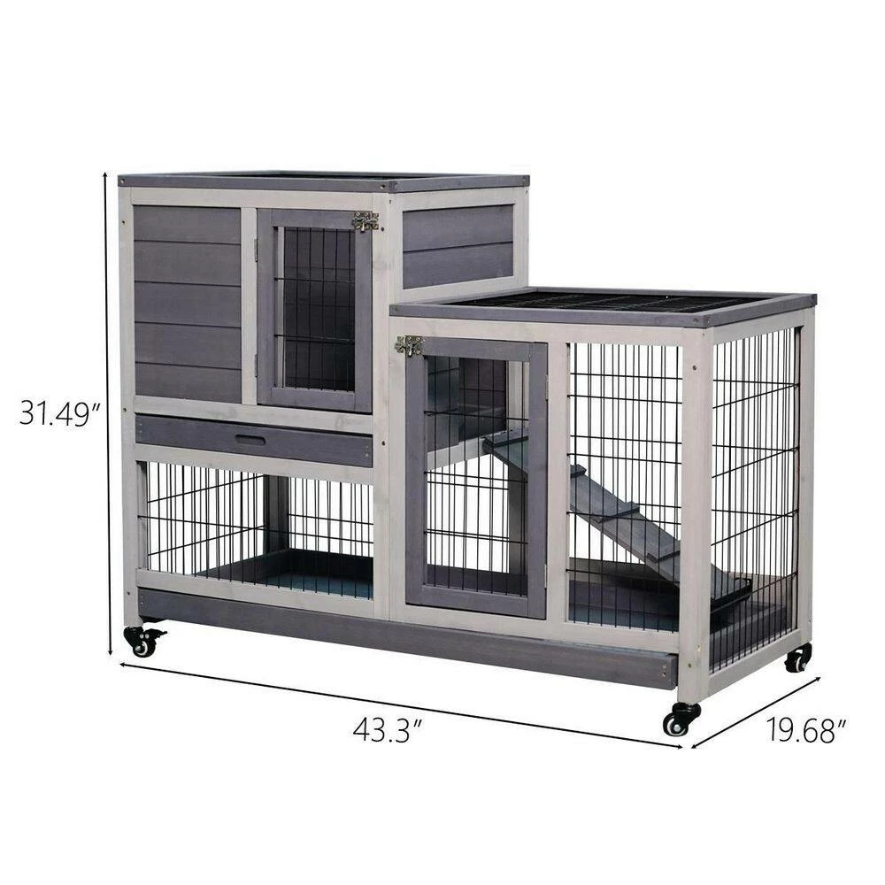 An outdoor house for your pets is always necessary and this is our 2-story rabbit house. Designed in an elegant apartment style, this hutch has a large activity area surrounded by galvanized wires mesh and a cozy resting room constructed by natural wood. Allowing your pets to safely and freely roam or play. You will benefit from this rabbit hutch with its 4 wheels to move around.
