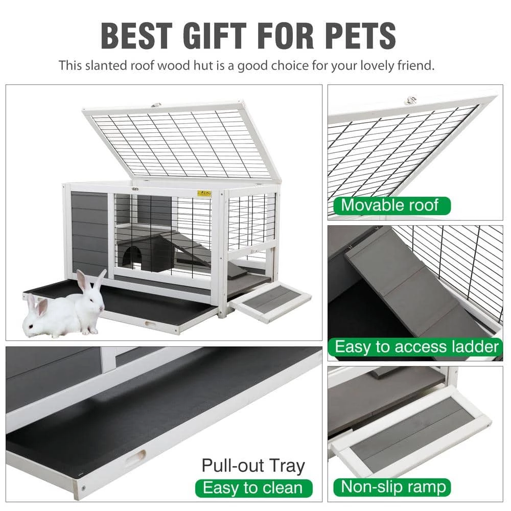 COZIWOW Solid Wood Rabbit Hutch is an ideal place for your rabbit can give them a comfort and sanitary living environment as well as a nice place to have fun. It has a shelter which provides your lovely pet a sense of security. The bunny hunch comes with stilted nesting box, bottom enclosure, 2 elevated platform and even ladder. This cage made of solid fir wood, so it’s stable and durable enough.Security acrylic painted on the cage is waterproof, anti-corrosion and even eco-friendly, which is good for your friends’ health and allows them to grow healthily. It can be the warm house for Holland Lop rabbit, Dutch rabbit, Lionhead rabbit and so many different breeds. And also suits for tortoise, hedgehog and other same size animals.